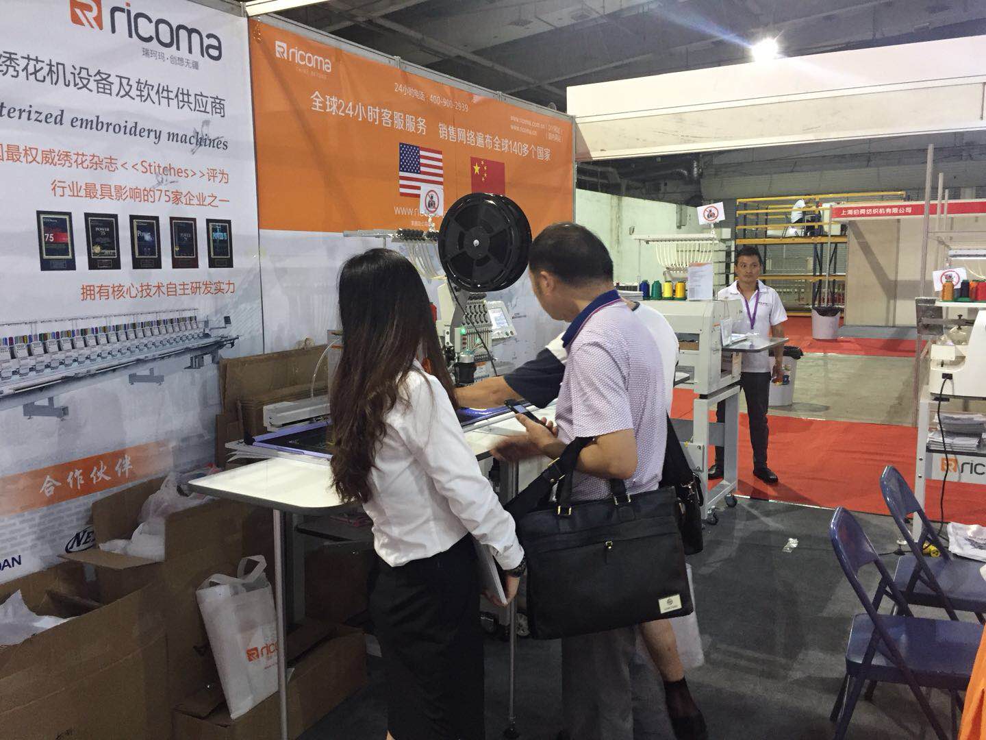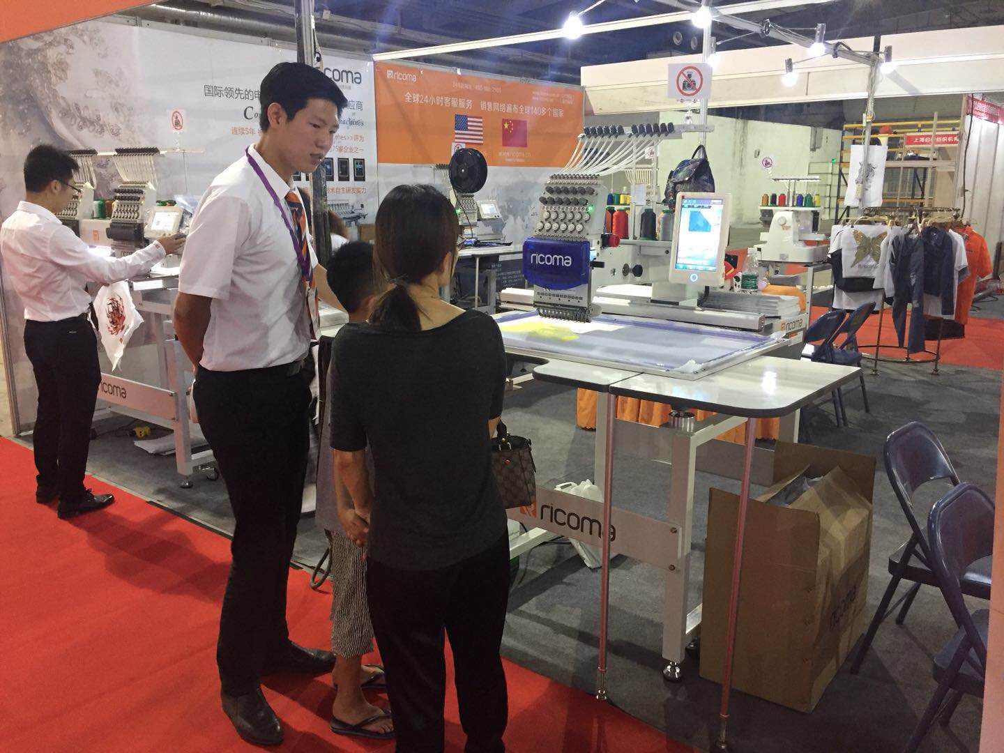 單雙頭機、EM系列單頭機、SWD系列單機頭、CHT2系列帽繡機,此外帶有照片繡新功能機型的單頭機也亮相了此次展會。我們的展位