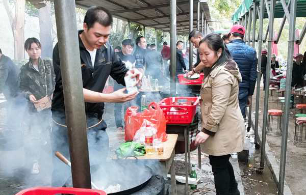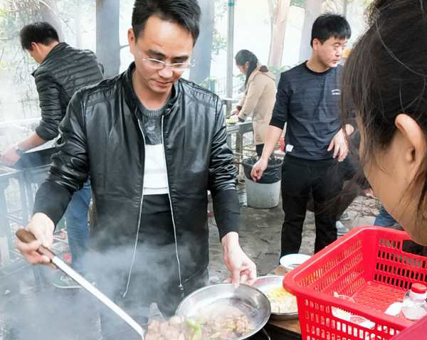 集體野炊,炊事班班長、伙夫,分工協作、場面熱火朝天。