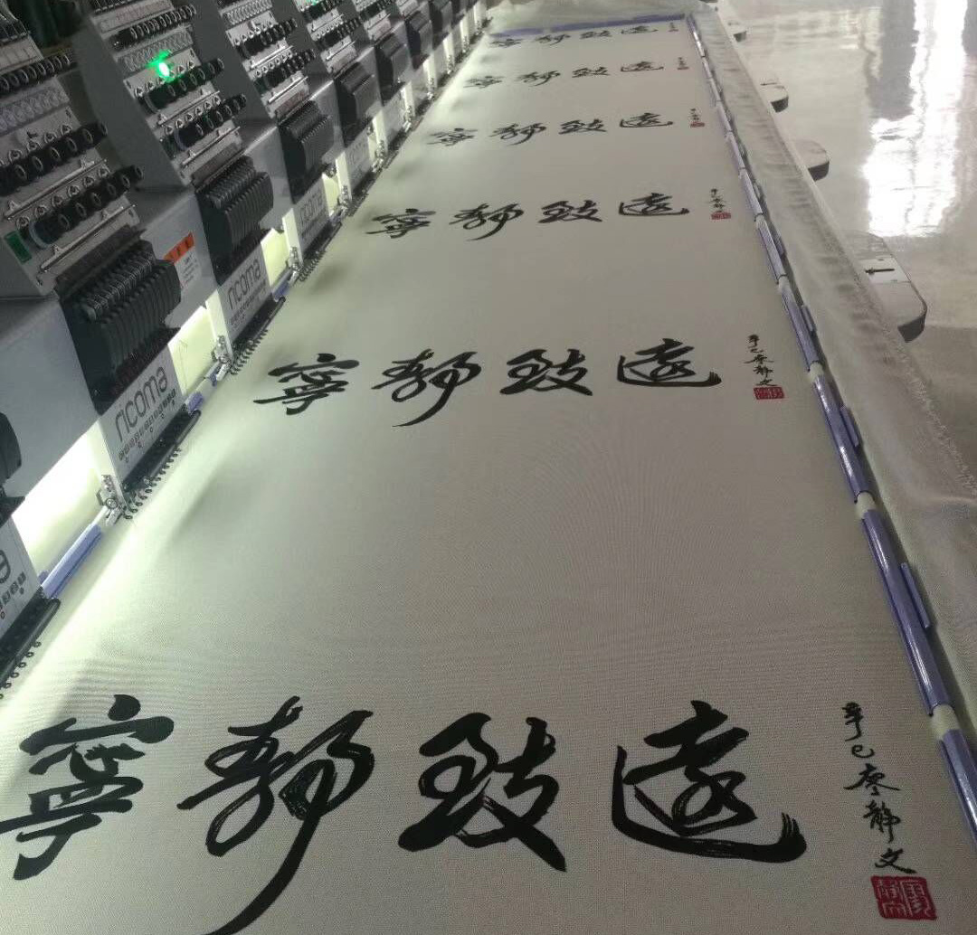 然而書(shū)法再與刺繡結(jié)合,“氣韻”或是“神采”更有力的展現(xiàn)出來(lái)。