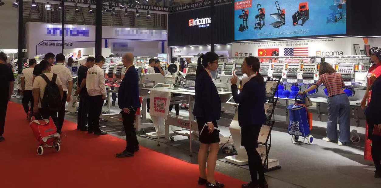 機(jī)、80色刺繡機(jī)等,新的機(jī)器吸引了眾多觀眾前來咨詢了解。絡(luò)繹不絕的人們讓現(xiàn)場非常火熱。