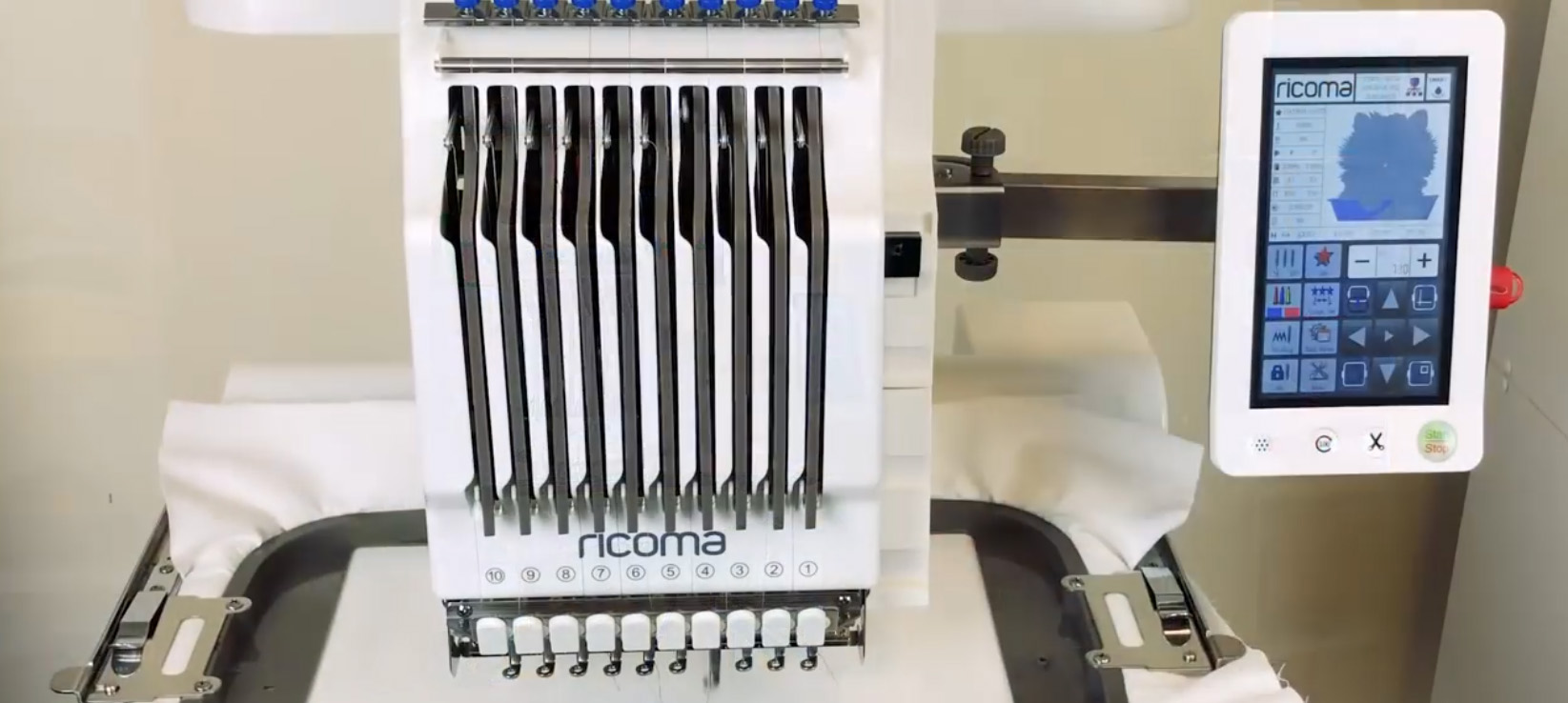 把裝好的繡框插入到機器上