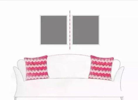 這是一種比較保守的布置方式,因為這樣,所以用這個方法不容易出錯,只需將兩幅裝飾畫左右或上下對稱懸掛。